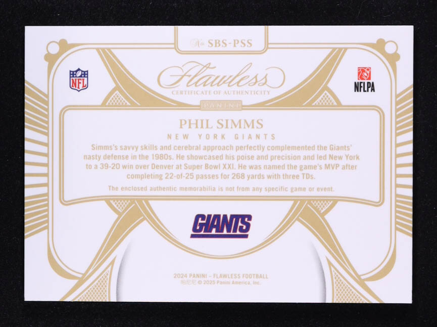 Phil Simms 2024 Panini Flawless Super Bowl Swatches Silver #9 #17/20
