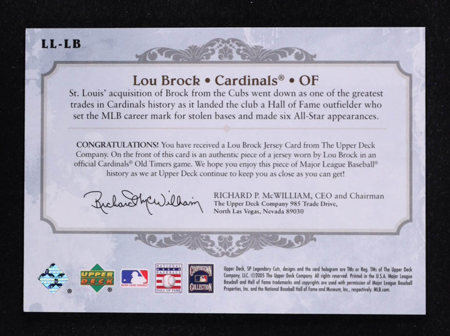 Lou Brock 2005 SP Legendary Cuts Lasting Legends Material #LB Jersey