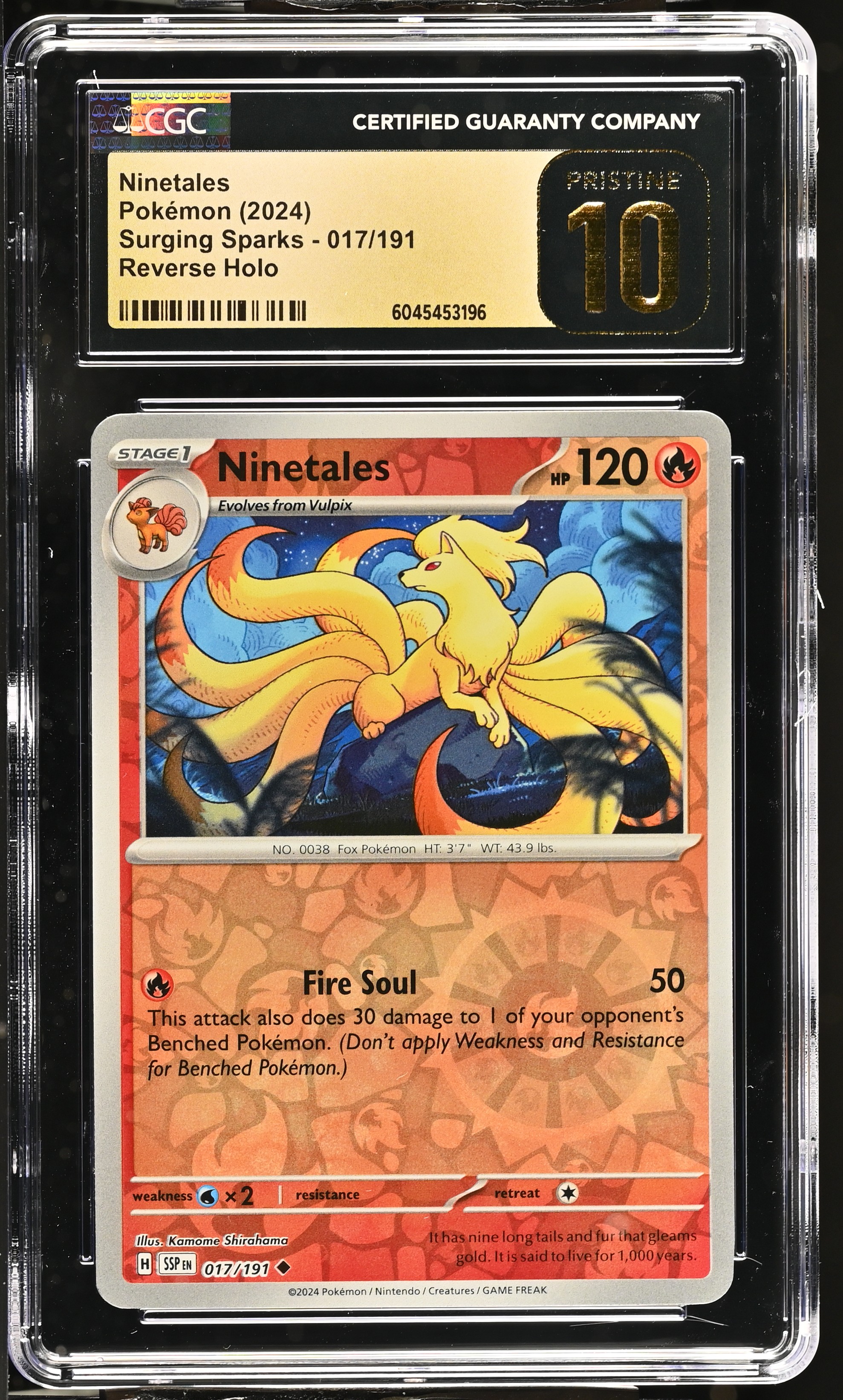Ninetales 2024 Pokemon Surging Sparks #017/191 (CGC PRISTINE 10 | Black Label)