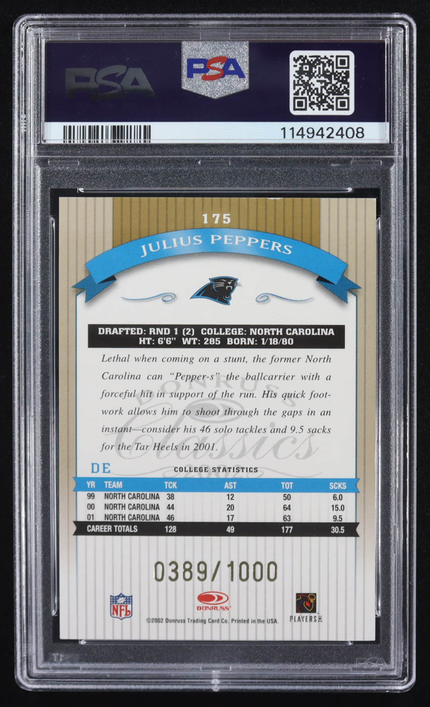 Julius Peppers 2002 Donruss Classics #175 RC #389/1000 (PSA 9)