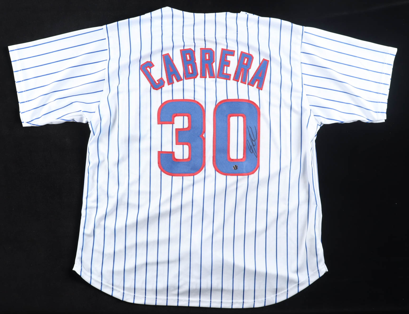 Custom jersey with everything sewn on, size XL. Hand-signed by Edward Cabrera