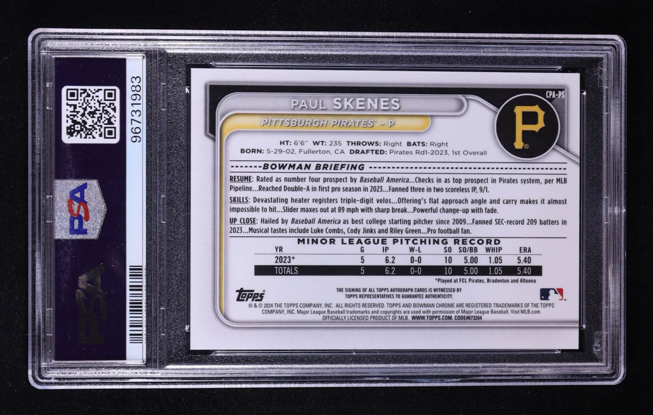 Paul Skenes 2024 Bowman Chrome Prospect Autographs #CPAPS RC (PSA 10)