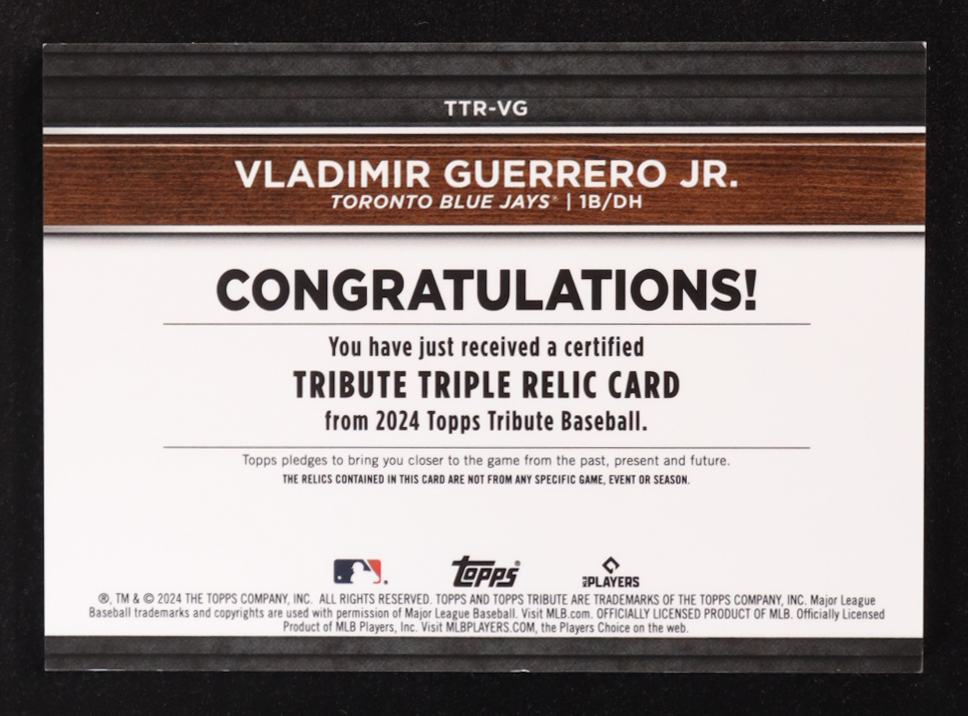 Vladimir Guerrero Jr. 2024 Topps Tribute Triple Relic Green #TTR-VG #44/99