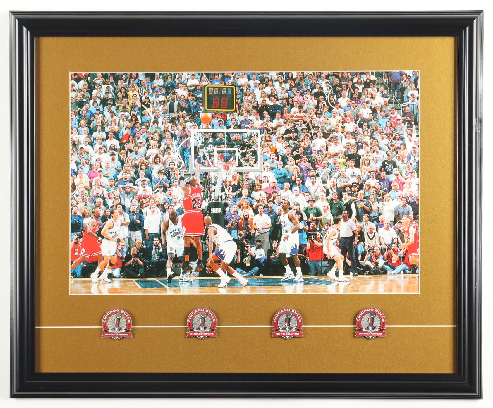 "Michael Jordan: The Final Shot!" Custom Framed Photo Display with (4) Bull Championship Pins