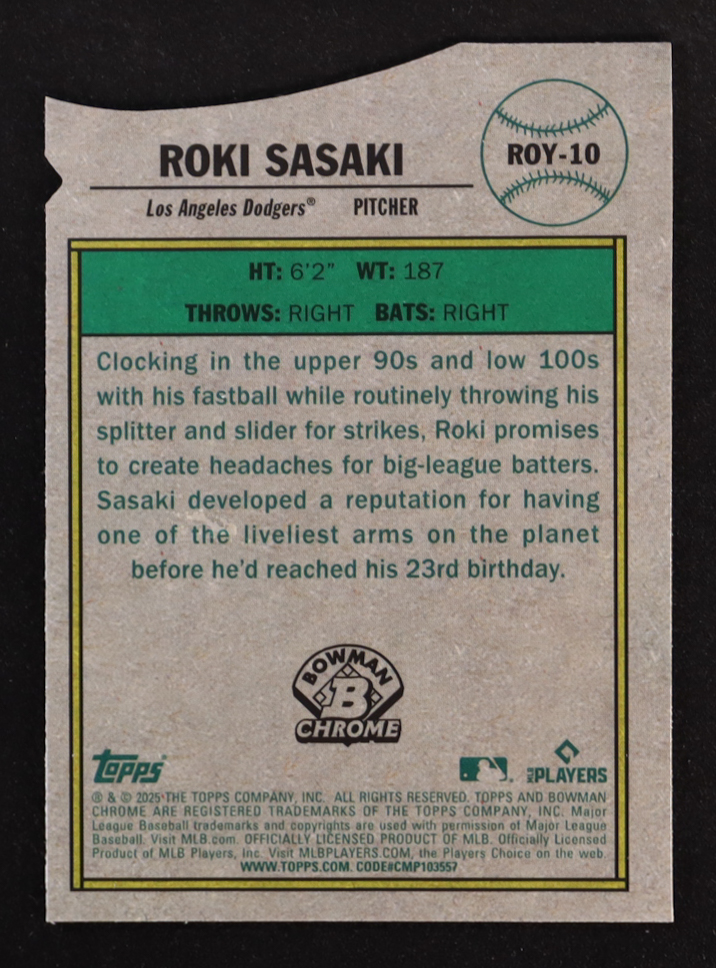 Roki Sasaki 2025 Bowman Chrome NL Rookie Of The Year Favorites #ROY-10 RC