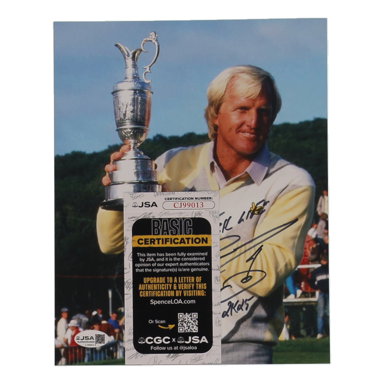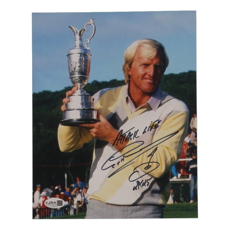 Greg Norman Signed 8x10 Photo Inscribed "Attack Life" & "2K25" with Hand-Drawn Hole Sketch (JSA)