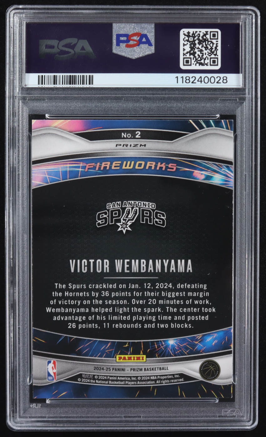 Victor Wembanyama 2024-25 Panini Prizm Fireworks Prizms Silver #2 (PSA 8)
