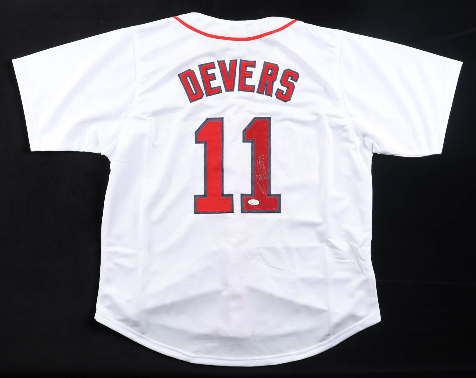 Custom jersey with everything sewn on, size XL. Hand-signed by Rafael Devers.