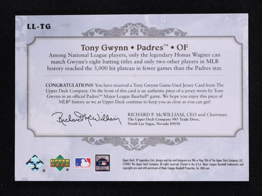 Tony Gwynn 2005 SP Legendary Cuts Lasting Legends Material #TG Jersey