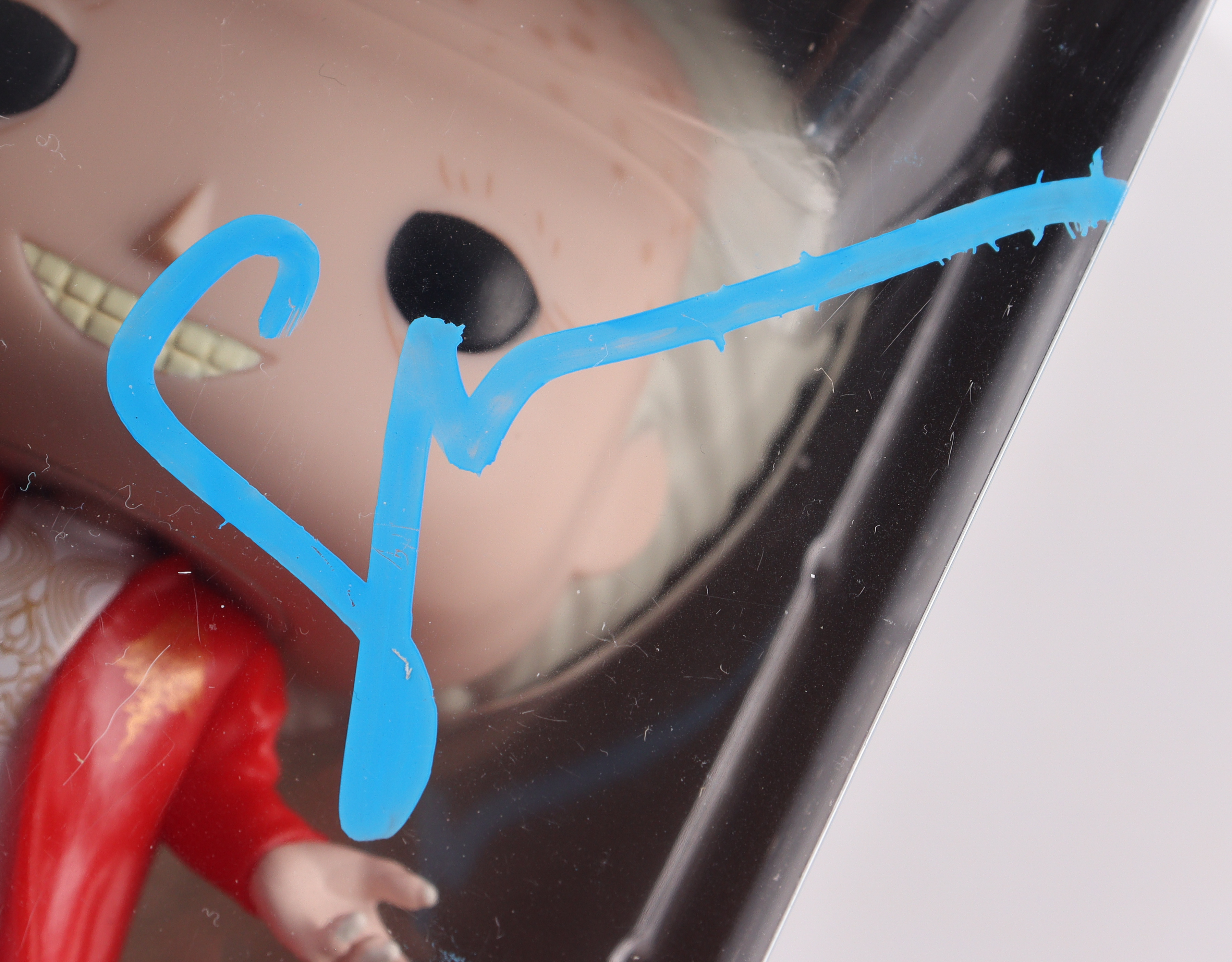 Vinyl figure measures approximately 4" tall and has been hand-signed on the packaging by Gary Oldman. Please note, the window has been swapped, there is tearing on the packaging, and there is residue on the window.