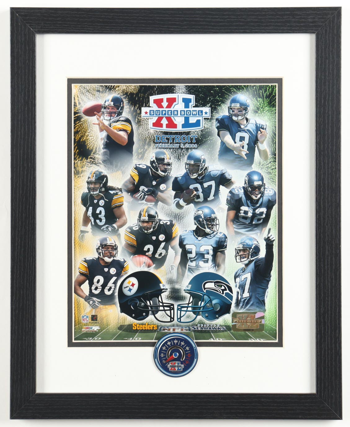 Super Bowl XL Custom Framed Art Print Display with Super Bowl XL Emblem
