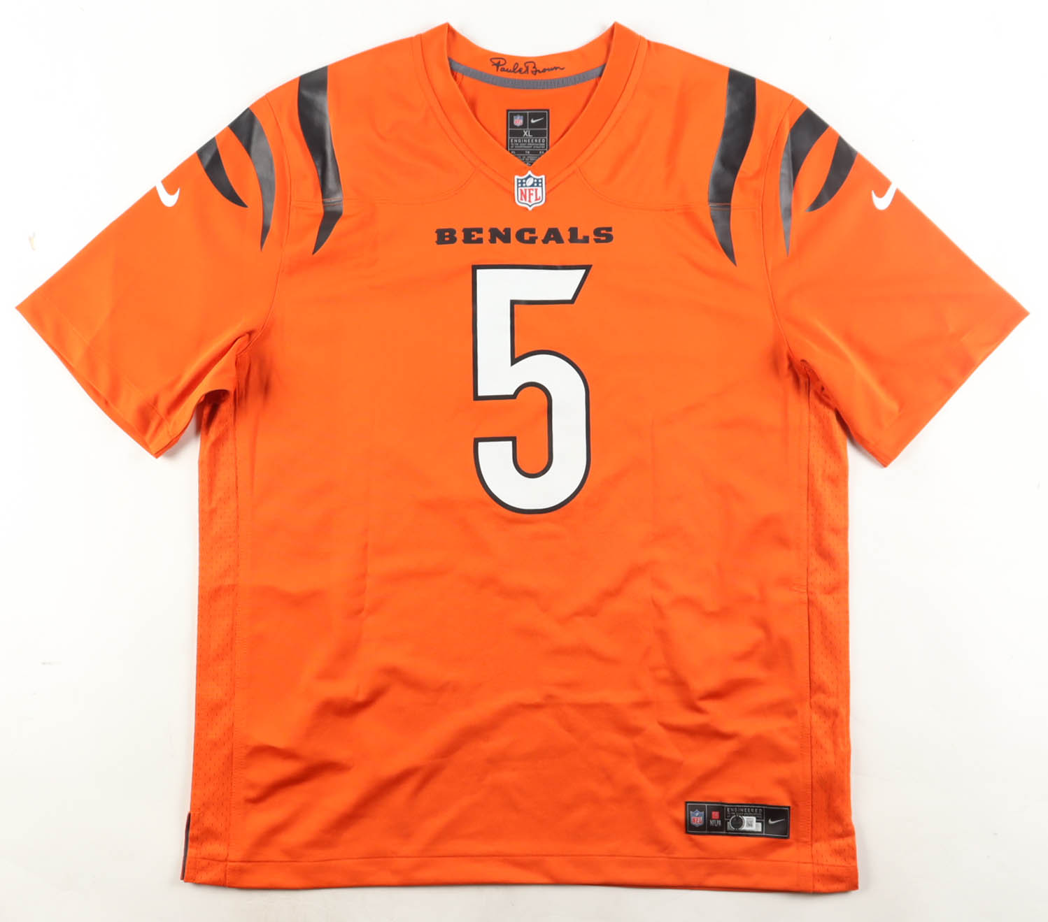 Nike jersey with everything pressed on, size XL. Hand-signed by Tee Higgins (Cincinnati Bengals).