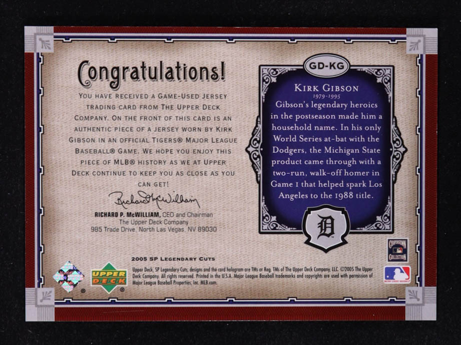 Kirk Gibson 2005 SP Legendary Cuts Glory Days Material #KG Jersey