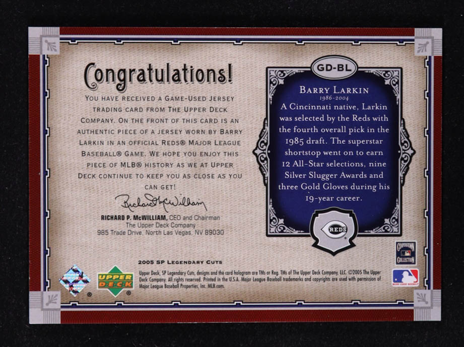 Barry Larkin 2005 SP Legendary Cuts Glory Days Material #BL Jersey