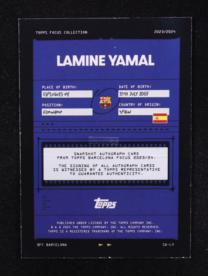 Lamine Yamal 2023-24 FC Barcelona Topps Focus Snapshots Autographs #SALY RC