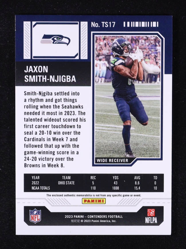 Jaxon Smith-Njigba 2023 Panini Contenders Rookie Ticket Swatches #17 RC