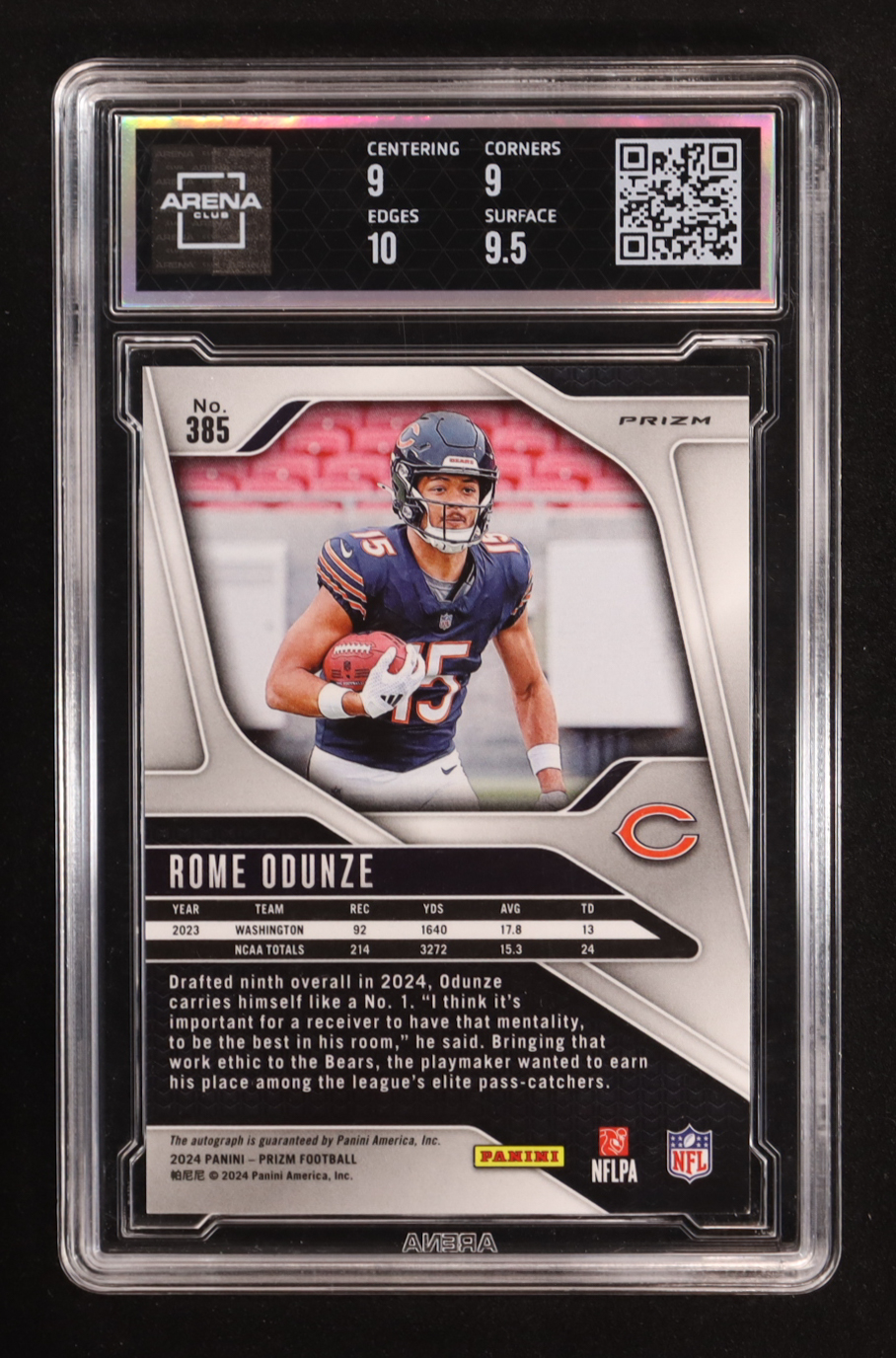 Rome Odunze Signed 2024 Panini Prizm Silver Prizm #385 RC (Arena Club 9.5 | Autograph Graded 10)