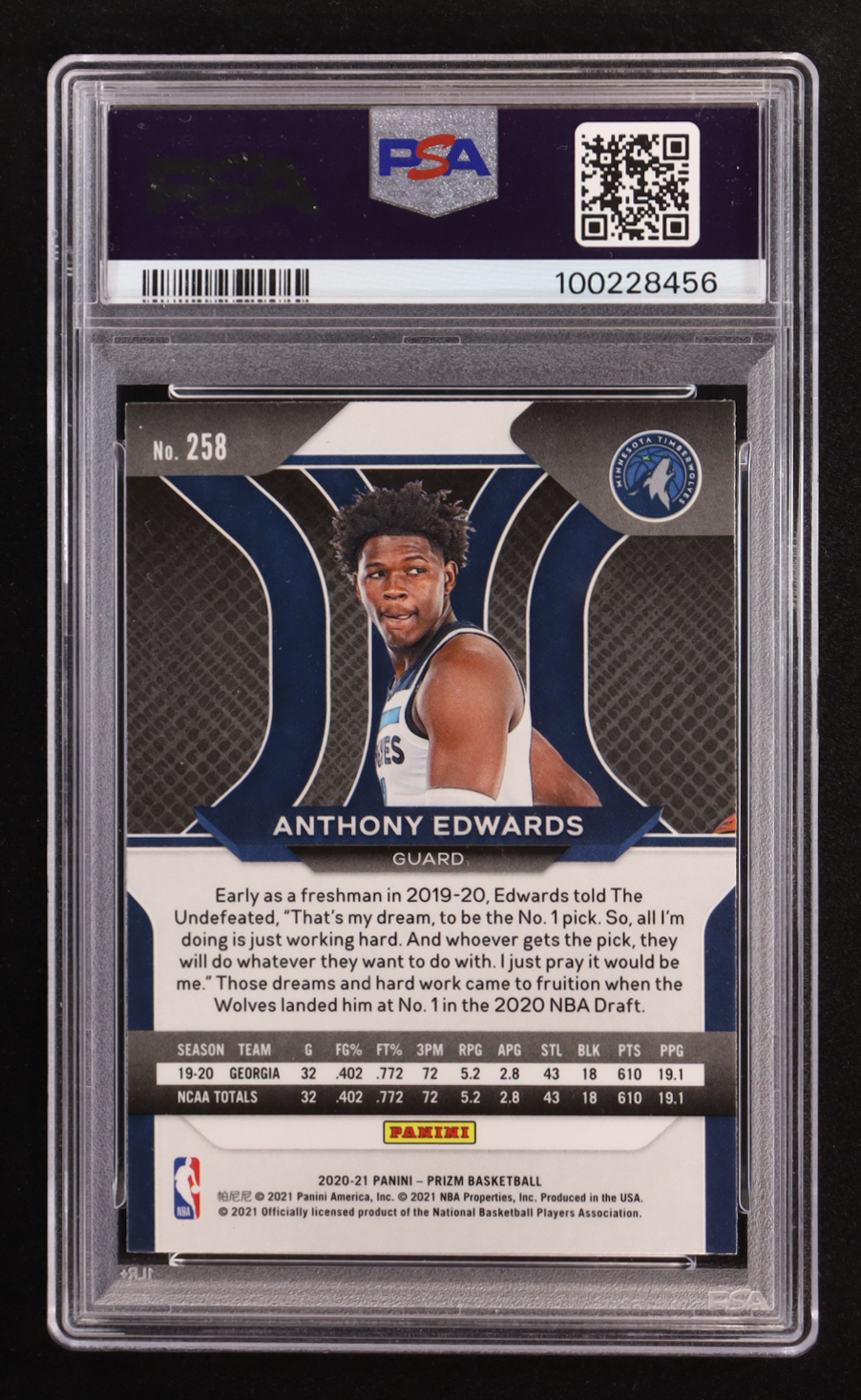 Anthony Edwards 2020 Panini Prizm #258 RC (PSA 9)