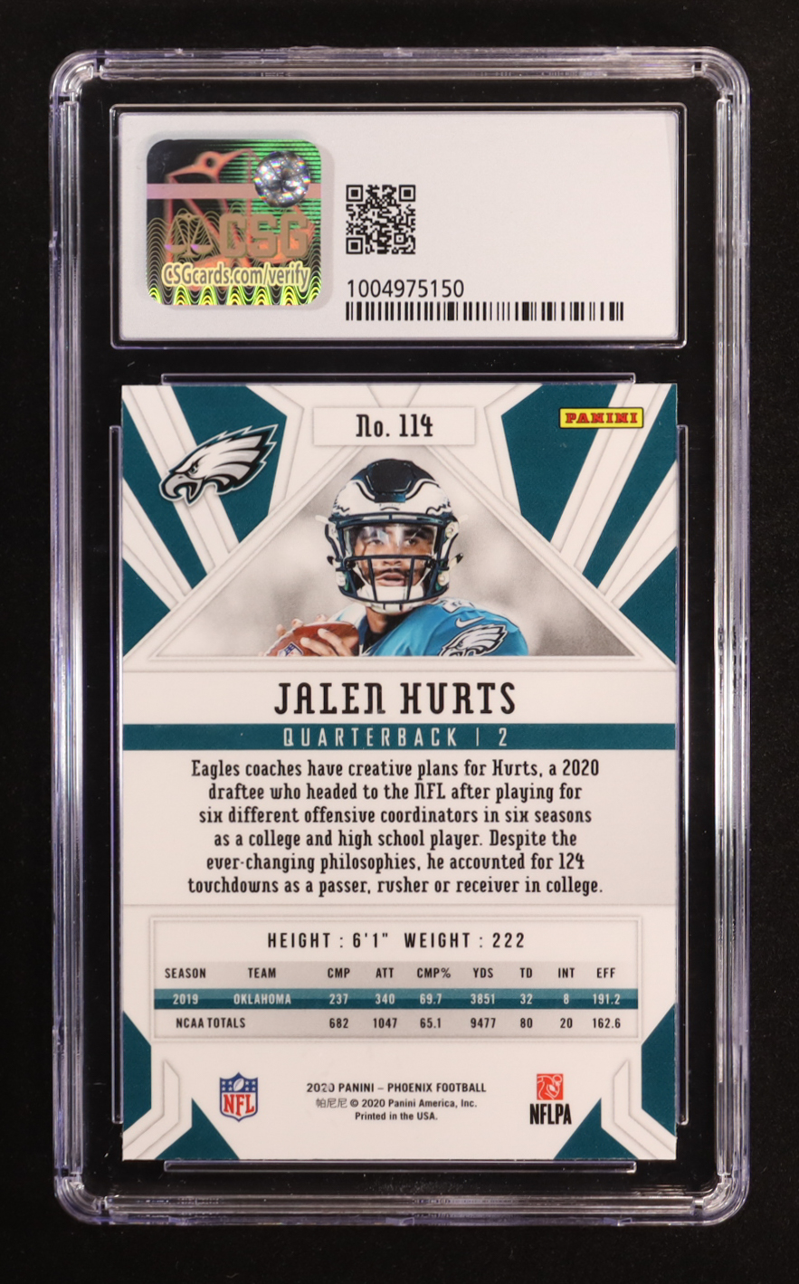 Jalen Hurts 2020 Panini Phoenix Fire Burst #114 RC (CSG 9.5)