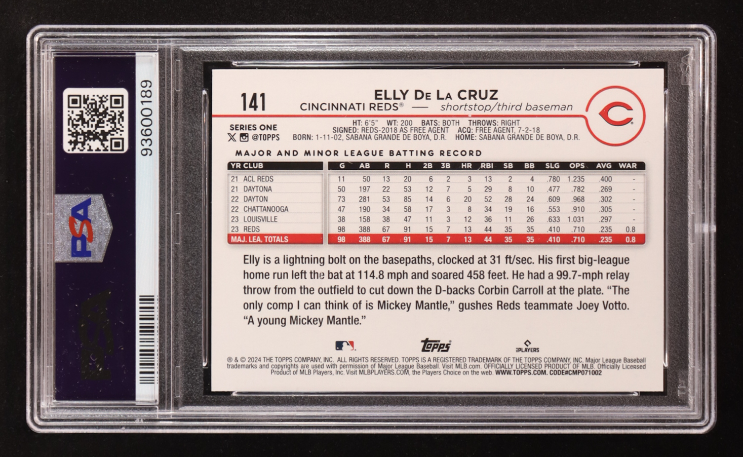 Elly De La Cruz 2024 Topps Series One #141 RC (PSA 9)