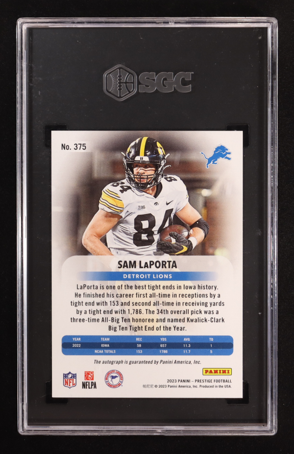 Sam LaPorta 2023 Prestige Xtra Points Signatures Premium Red #375 #134/199 RC (SGC 10 | Autograph Graded 10)
