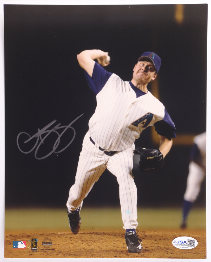 Photo measures 8" x 10" in size and has been hand-signed by Curt Schilling (Arizona Diamondbacks).