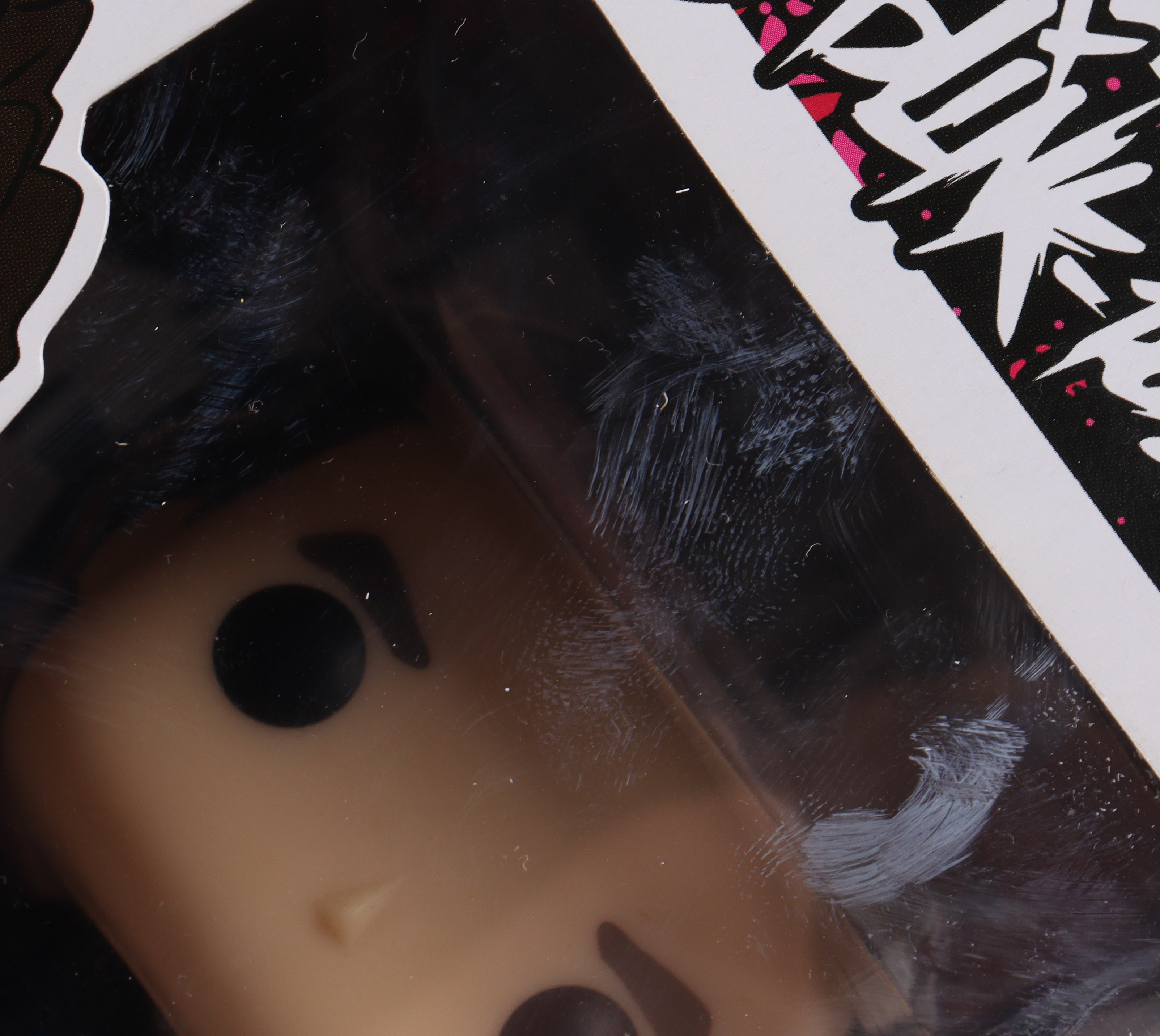 Vinyl figure measures approximately 4" tall and has been hand-signed on the packaging by Mark Hoppus. Item has been window-swapped. Please note the residue on the window.