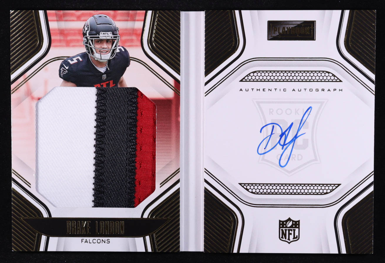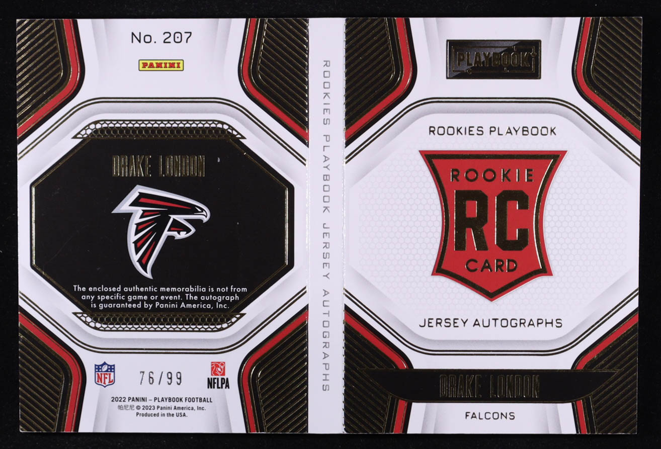 Drake London 2022 Panini Playbook Gold #207 Jersey Autograph #76/99 RC