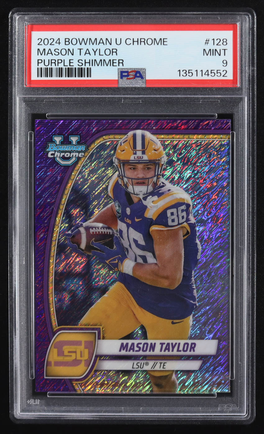 Mason Taylor 2024 Bowman Chrome University Shimmer Purple Refractors #128 RC (PSA 9)