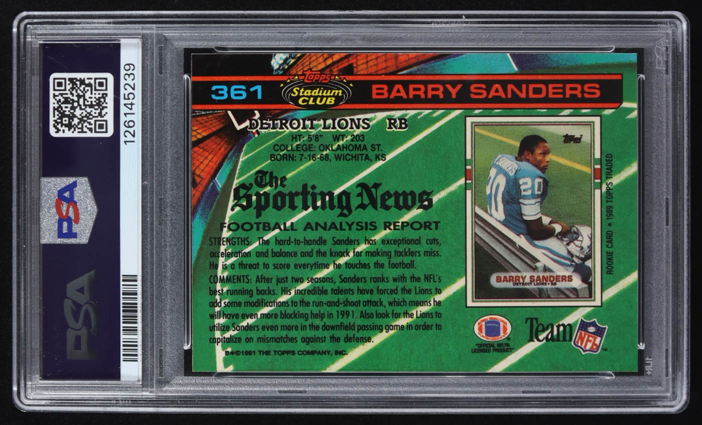 Barry Sanders 1991 Stadium Club #361 (PSA 9)