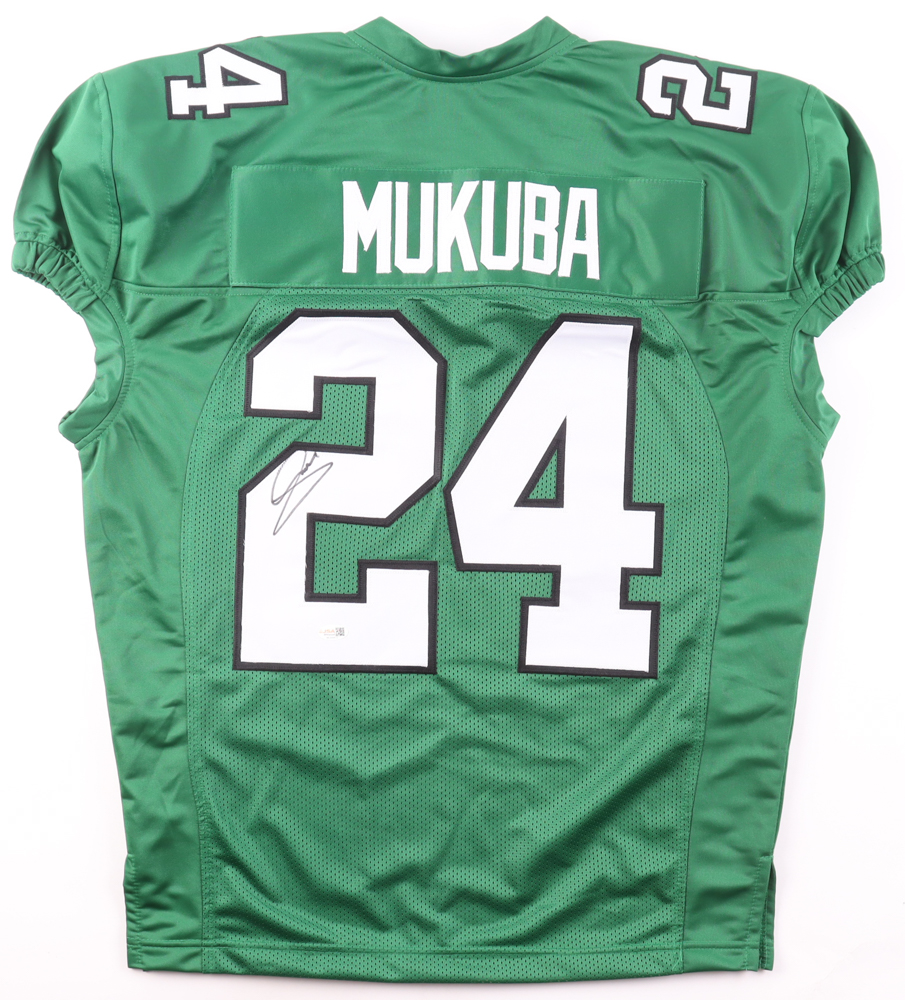Custom jersey with everything sewn on, size XL. Hand-signed by Andrew Mukuba.