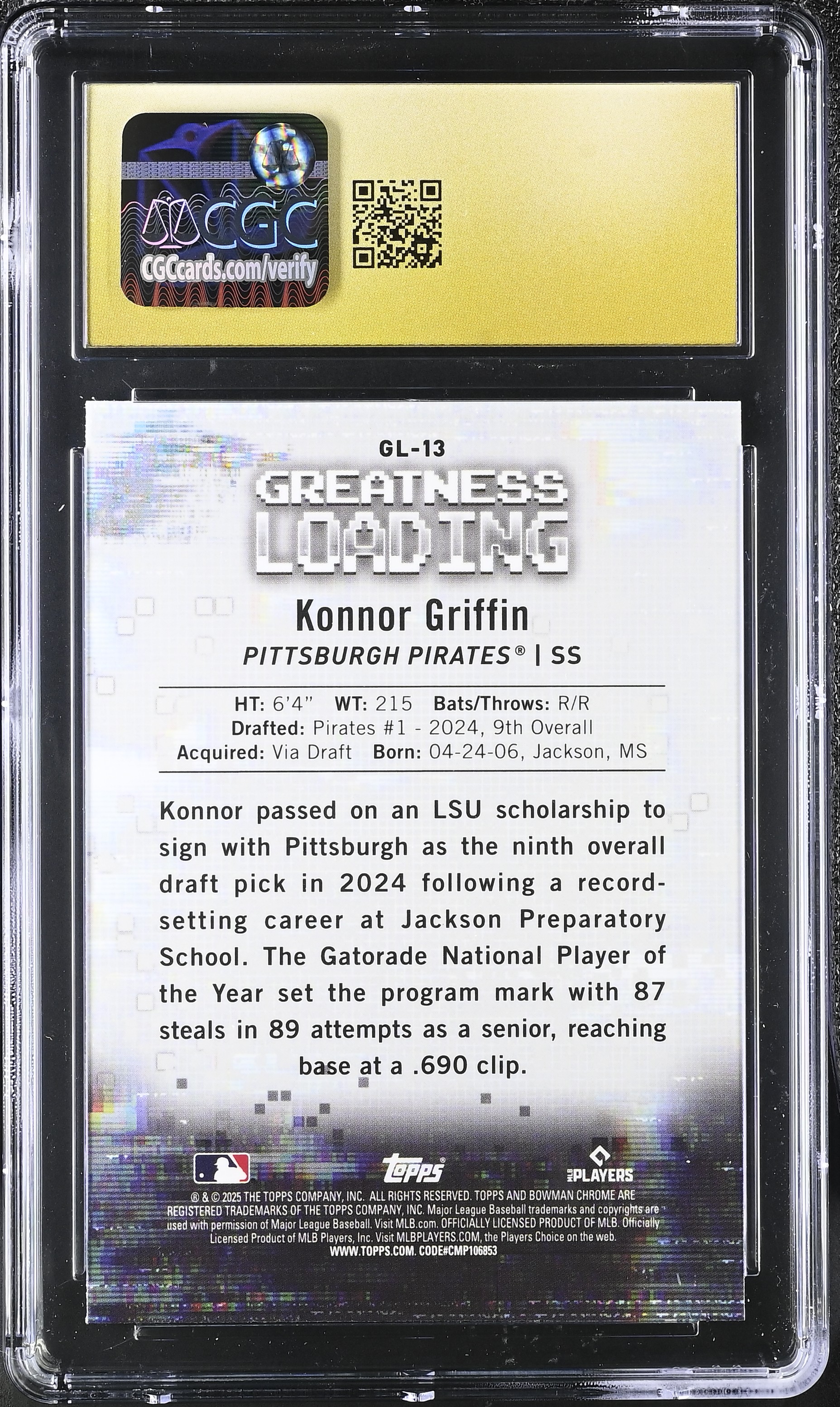 Konnor Griffin 2025 Bowman Chrome Greatness Loading #GL13 RC (CGC 10 | Black Label)