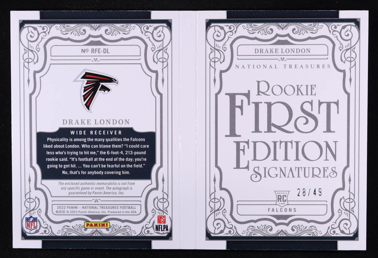 Drake London 2022 Panini National Treasures Rookie First Edition Signatures Booklet #7 #28/49 RC