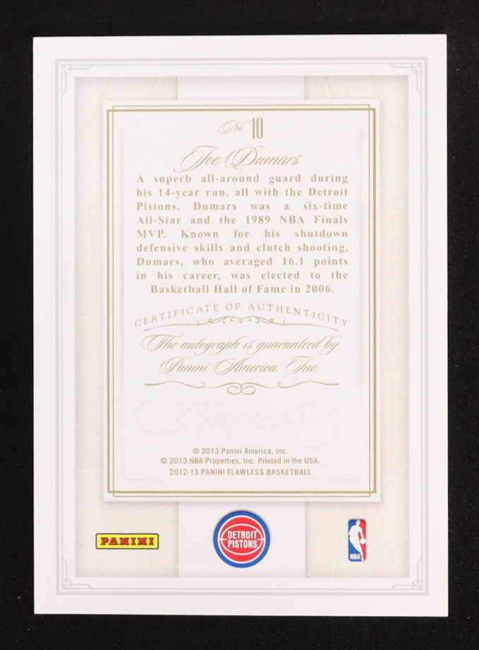 Joe Dumars 2012-13 Panini Flawless Hall of Fame Autographs #10 #17/20