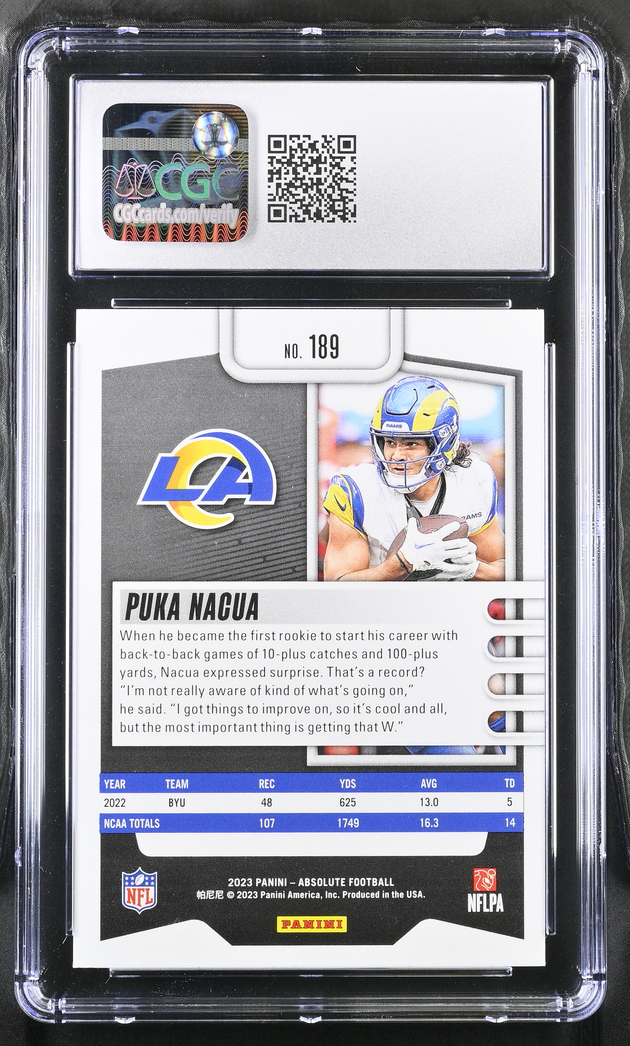 Puka Nacua 2023 Absolute #189 RC (CGC 9)