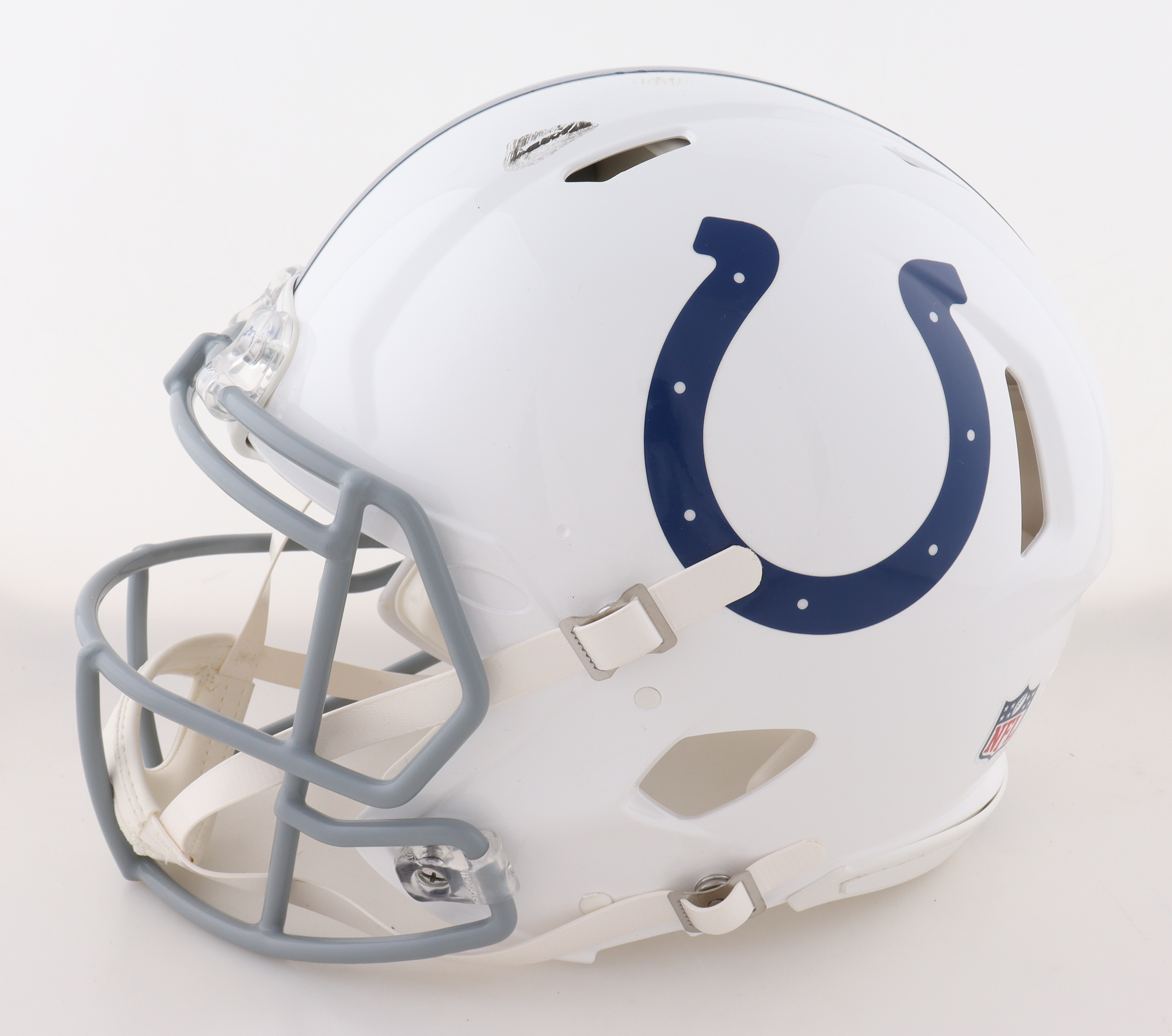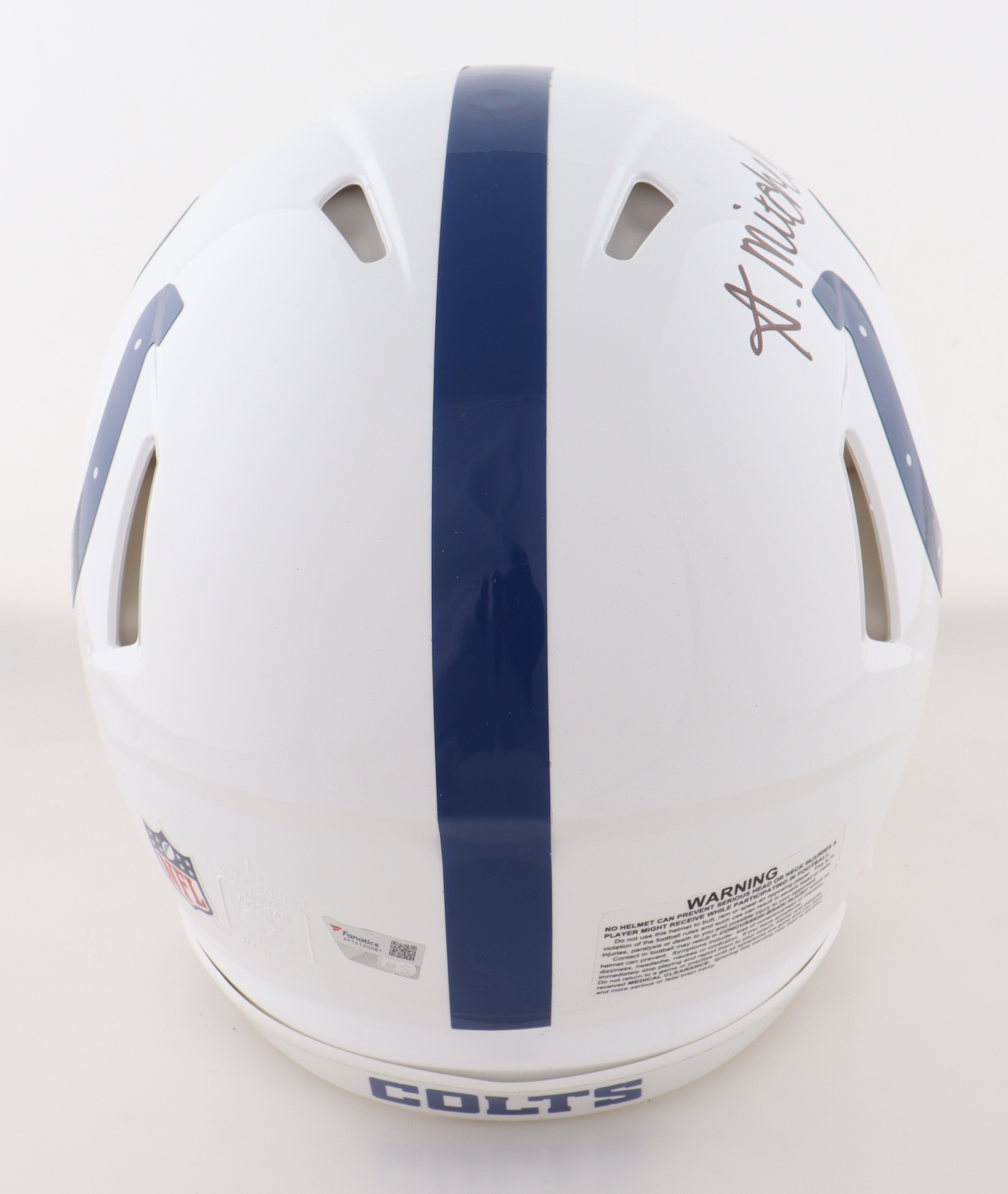 Riddell Indianapolis Colts Full-Size Authentic On-Field Speed Helmet. Hand-signed by Adonai Mitchell. Please note, there is scuffing throughout the helmet.