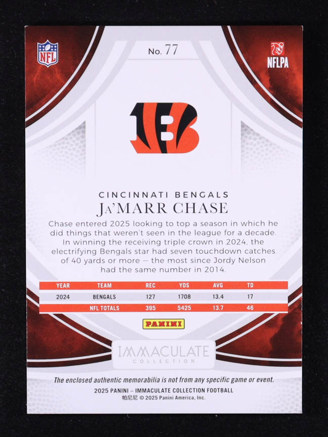 Ja'Marr Chase 2025 Immaculate Collection #77 JSY #59/99