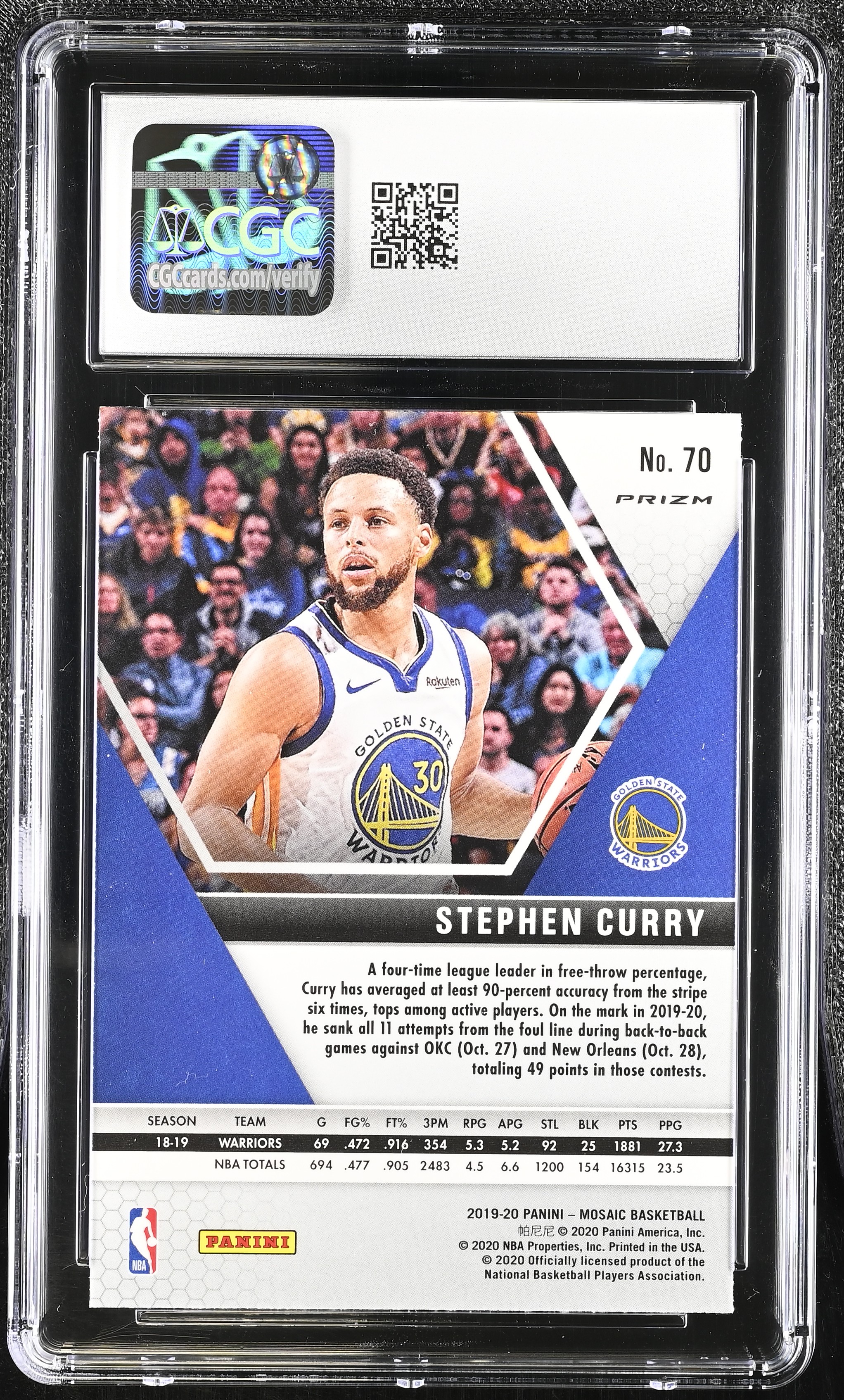 Stephen Curry 2019-20 Panini Mosaic Mosaic Blue Reactive #70 (CGC 10)