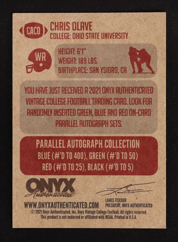 Chris Olave 2021 Onyx Vintage College Autographs Blue #CACO RC