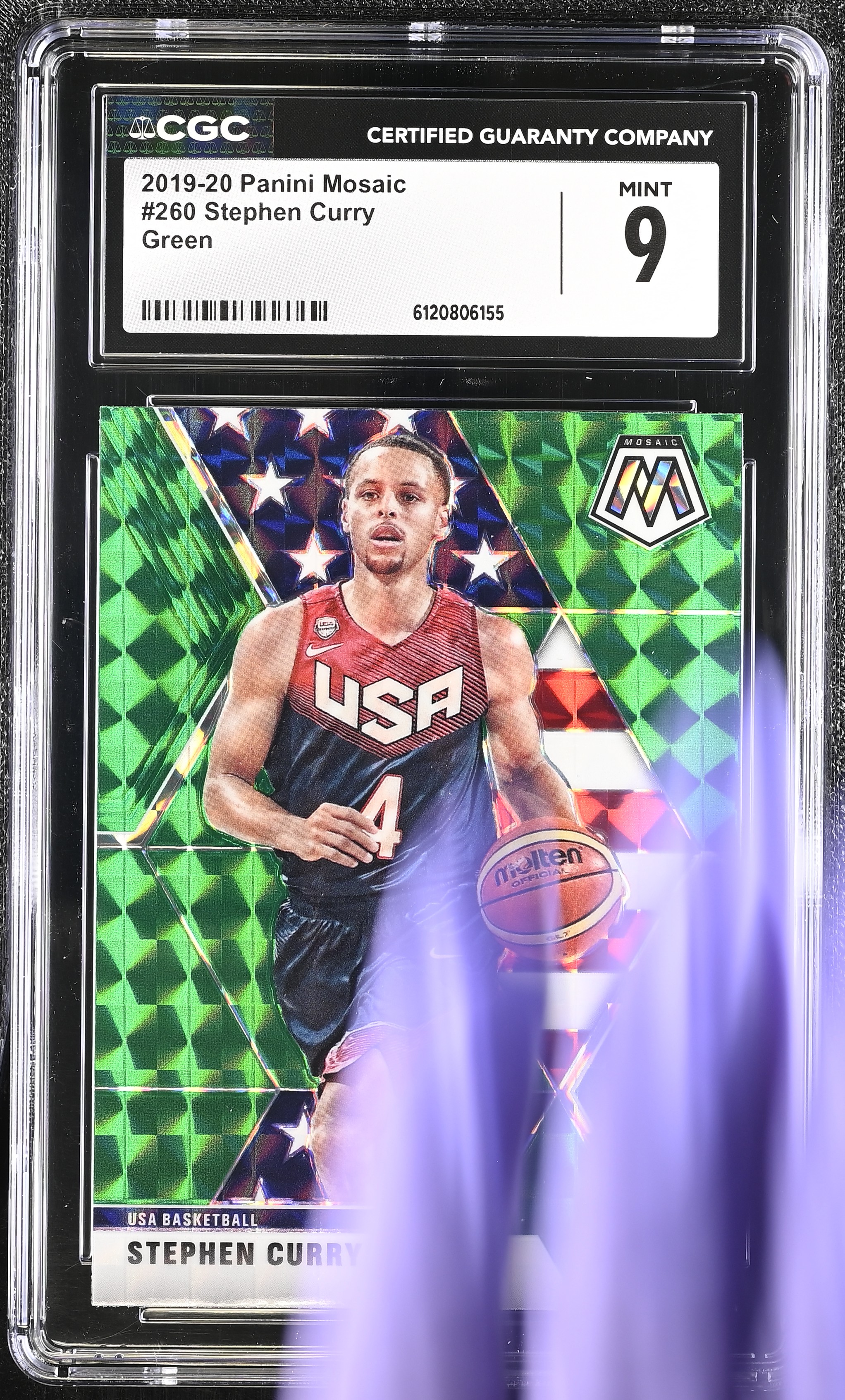 Stephen Curry 2019-20 Panini Mosaic Mosaic Green #260 (CGC 9)