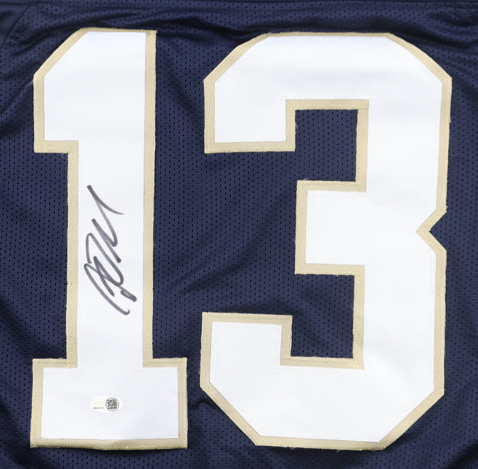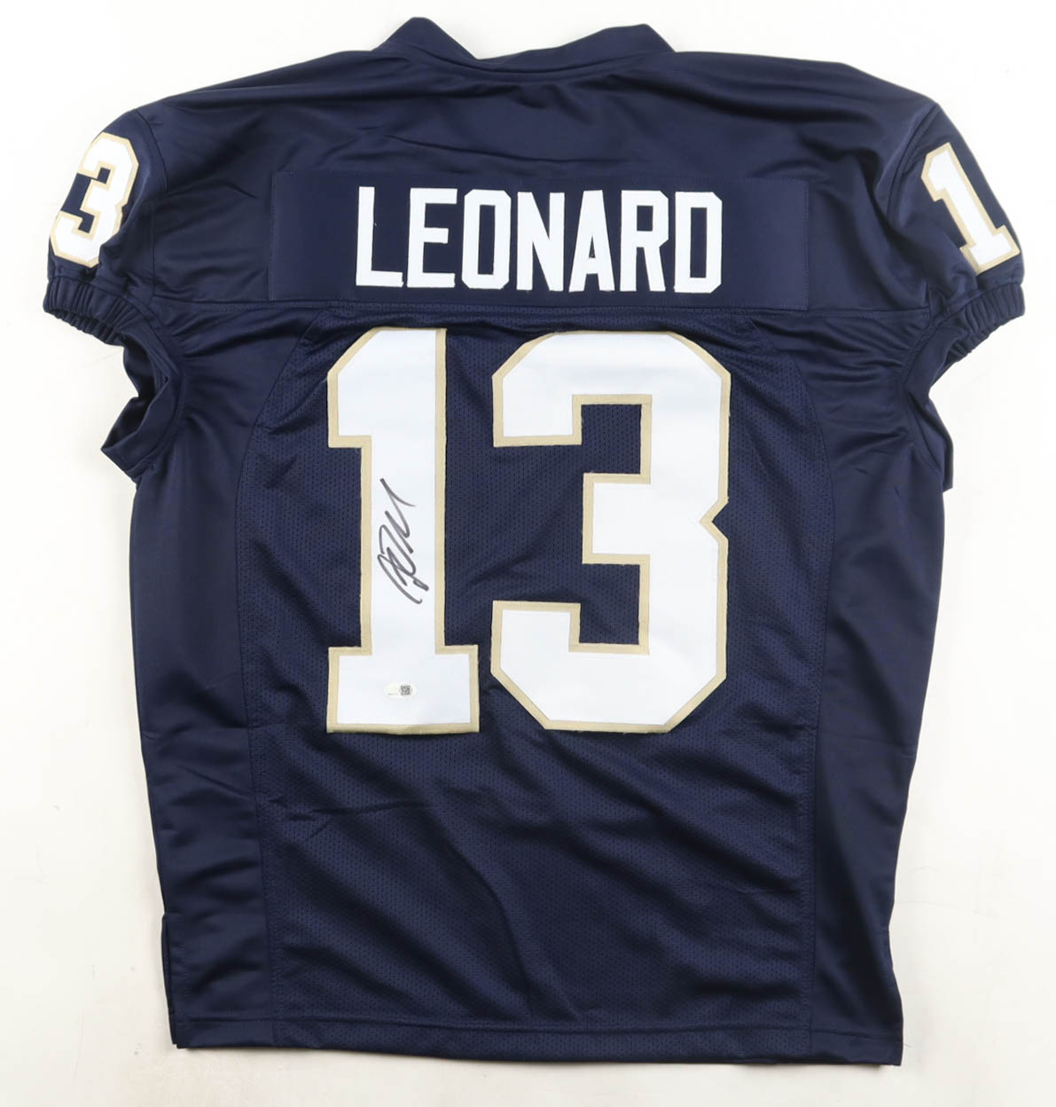 Custom jersey with everything sewn on, size XL. Hand-signed by Riley Leonard.