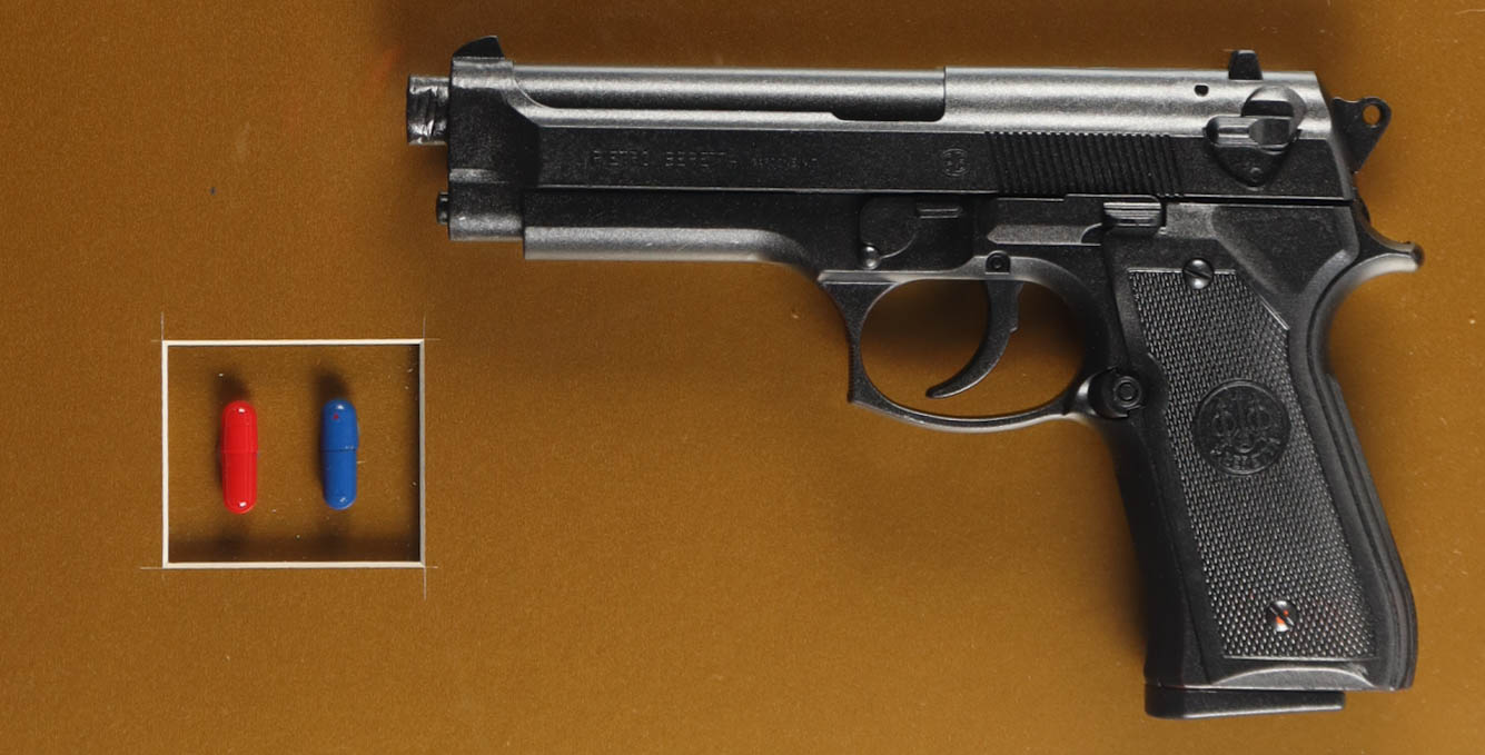 "The Matrix" Custom Framed Photo Display with Prop Pistol & (2) Prop Replica Pills
