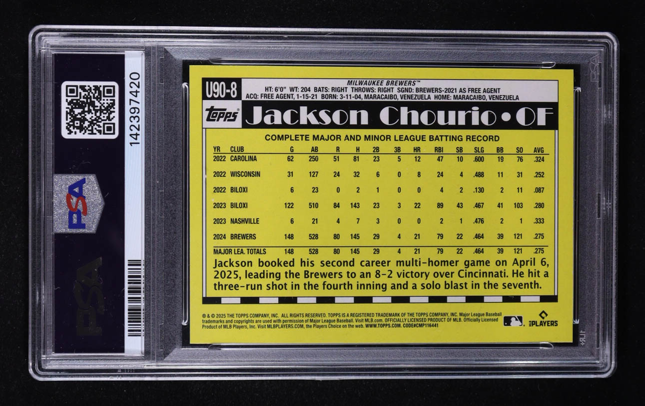 Jackson Chourio 2025 Topps Update '90 Topps #U908 (PSA 9)