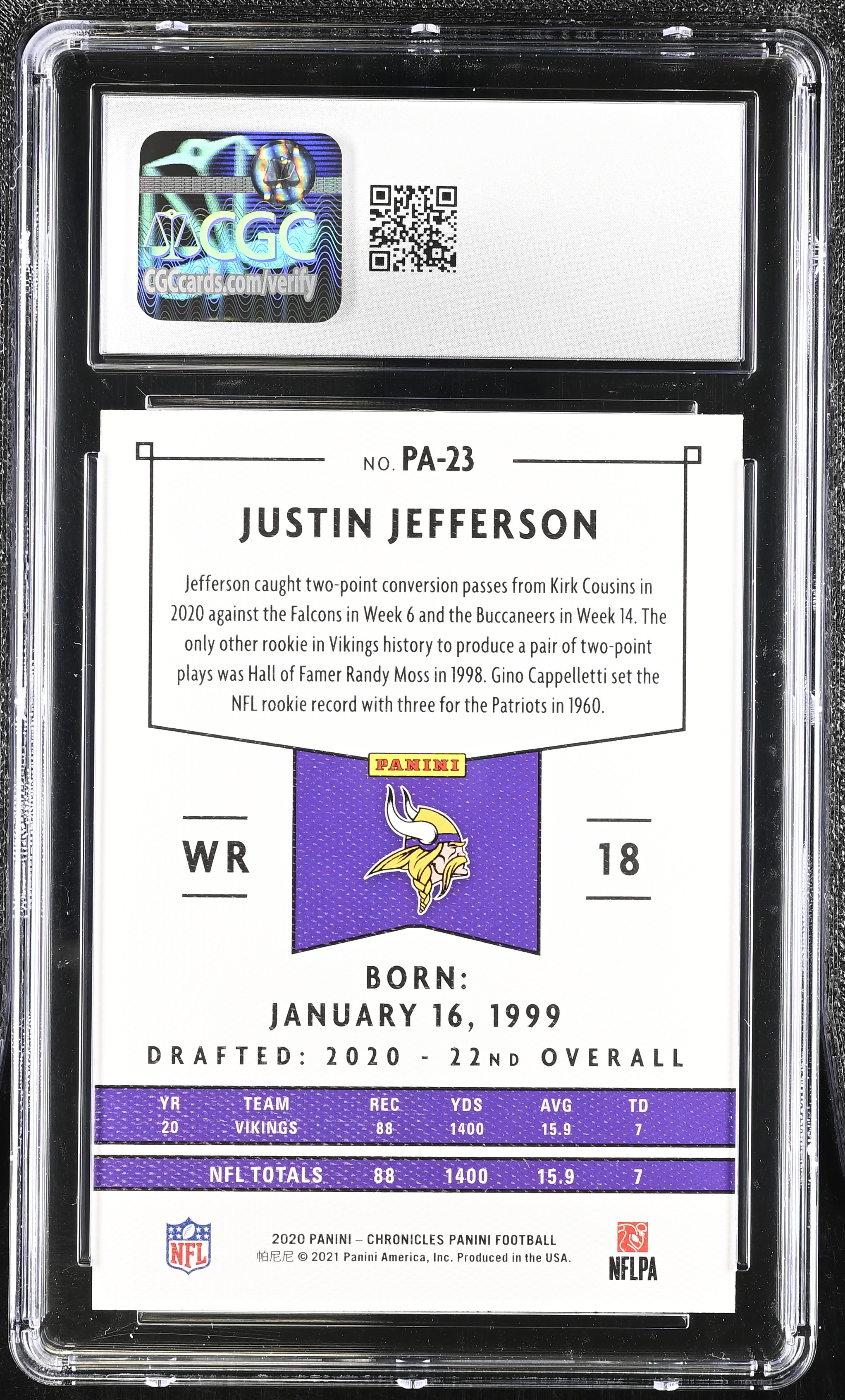 Justin Jefferson 2020 Panini Chronicles Panini #PA23 RC (CGC 9.5)