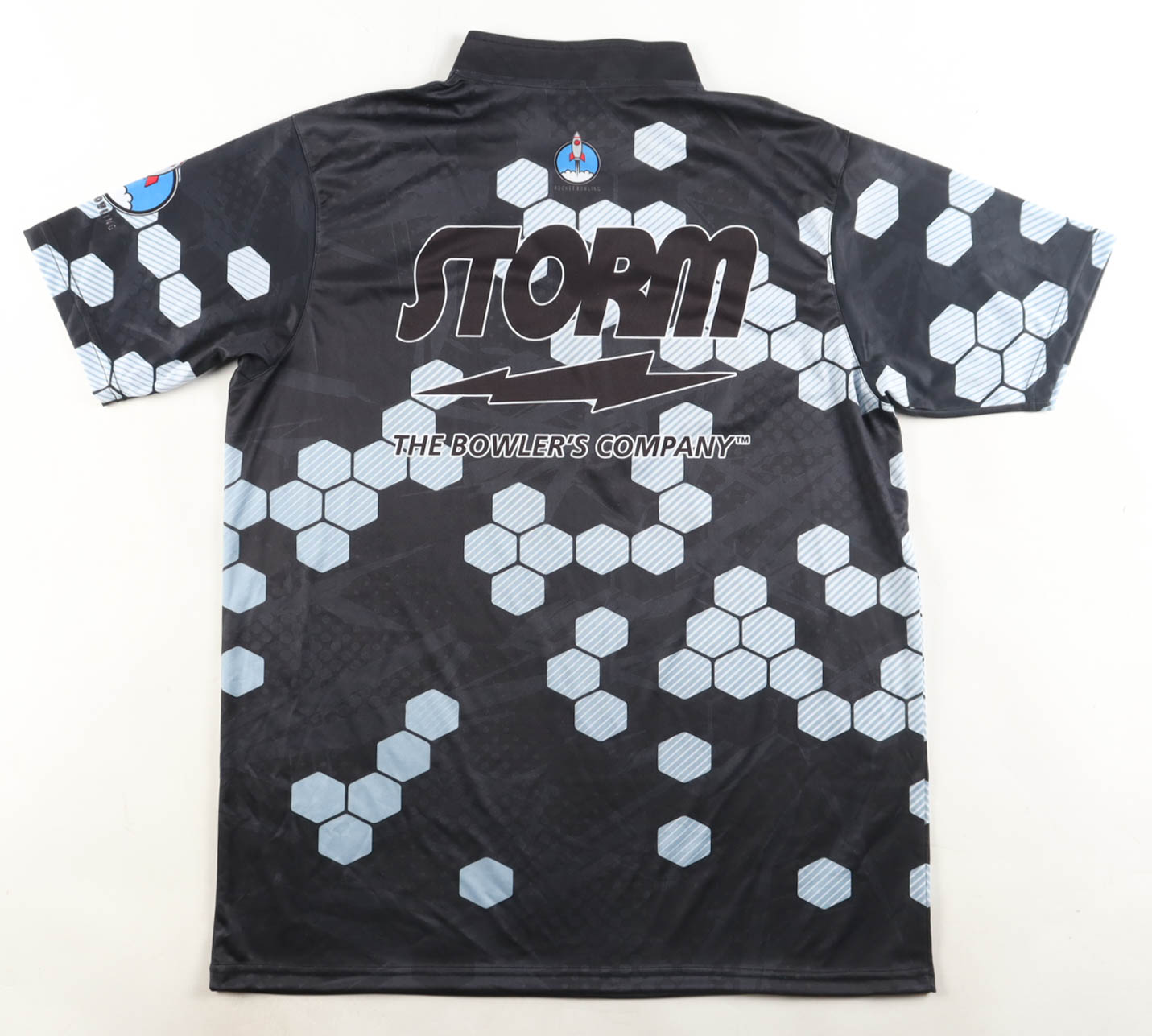 Rocket Bowling jersey. Everything sewn on, size XL. Hand-signed and inscribed by Pete Weber (HOF).