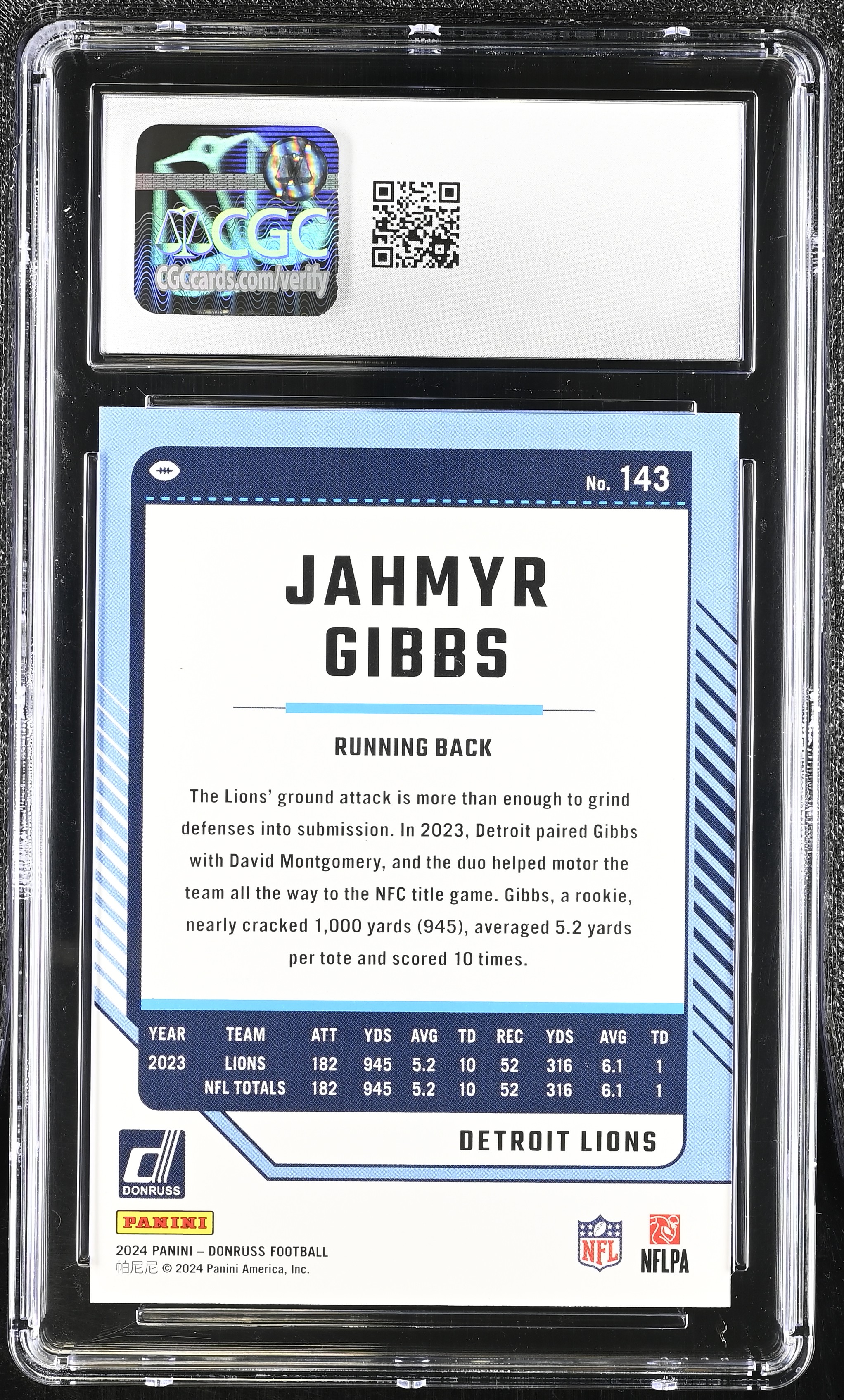 Jahmyr Gibbs 2024 Donruss No Name #143 (CGC 9)