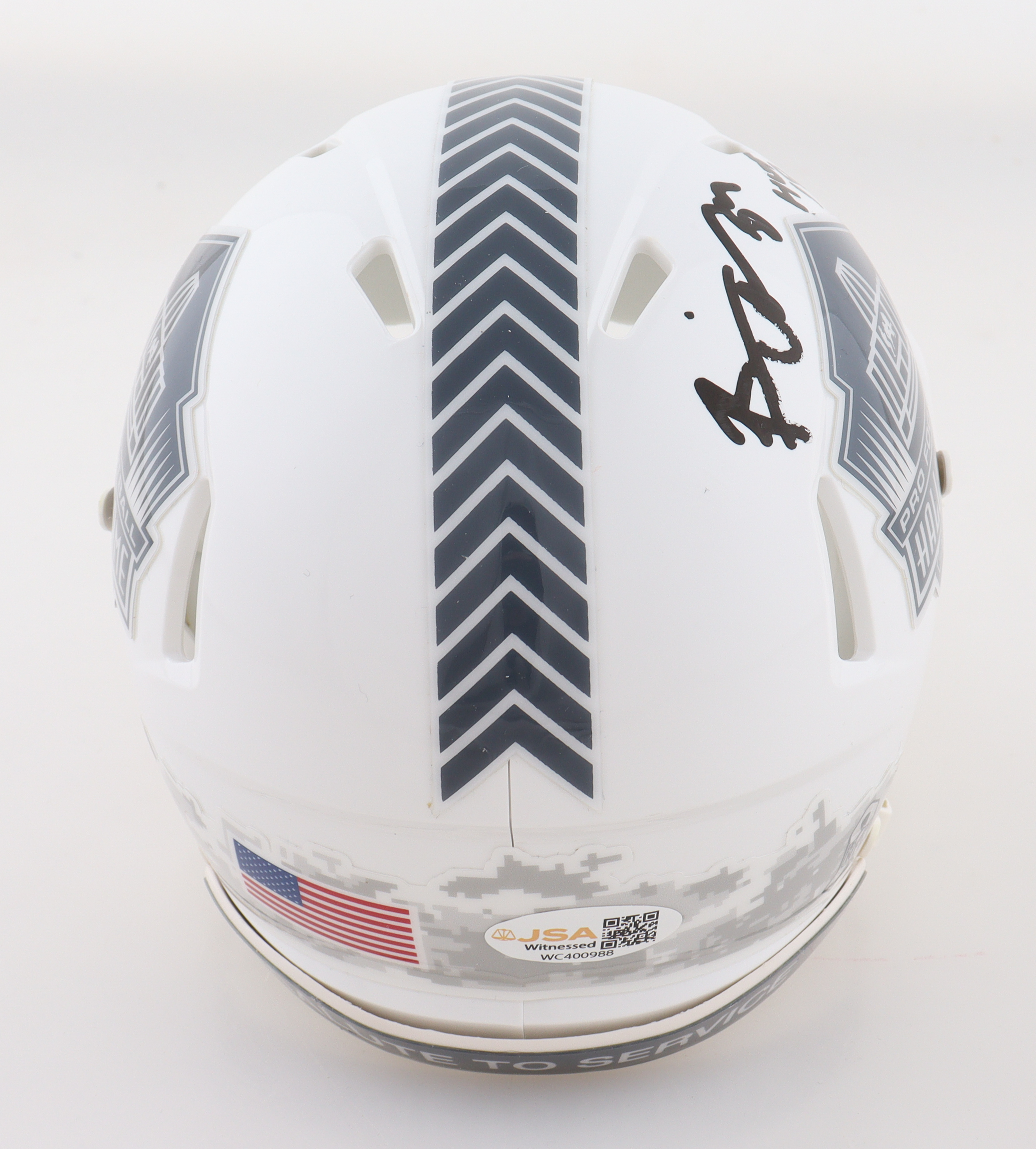 Riddell Salute to Service Alternate Hall of Fame Logo Speed Mini Helmet. Hand-signed and inscribed by Brian Urlacher (Chicago Bears, HOF). Please note the autograph is smudged.