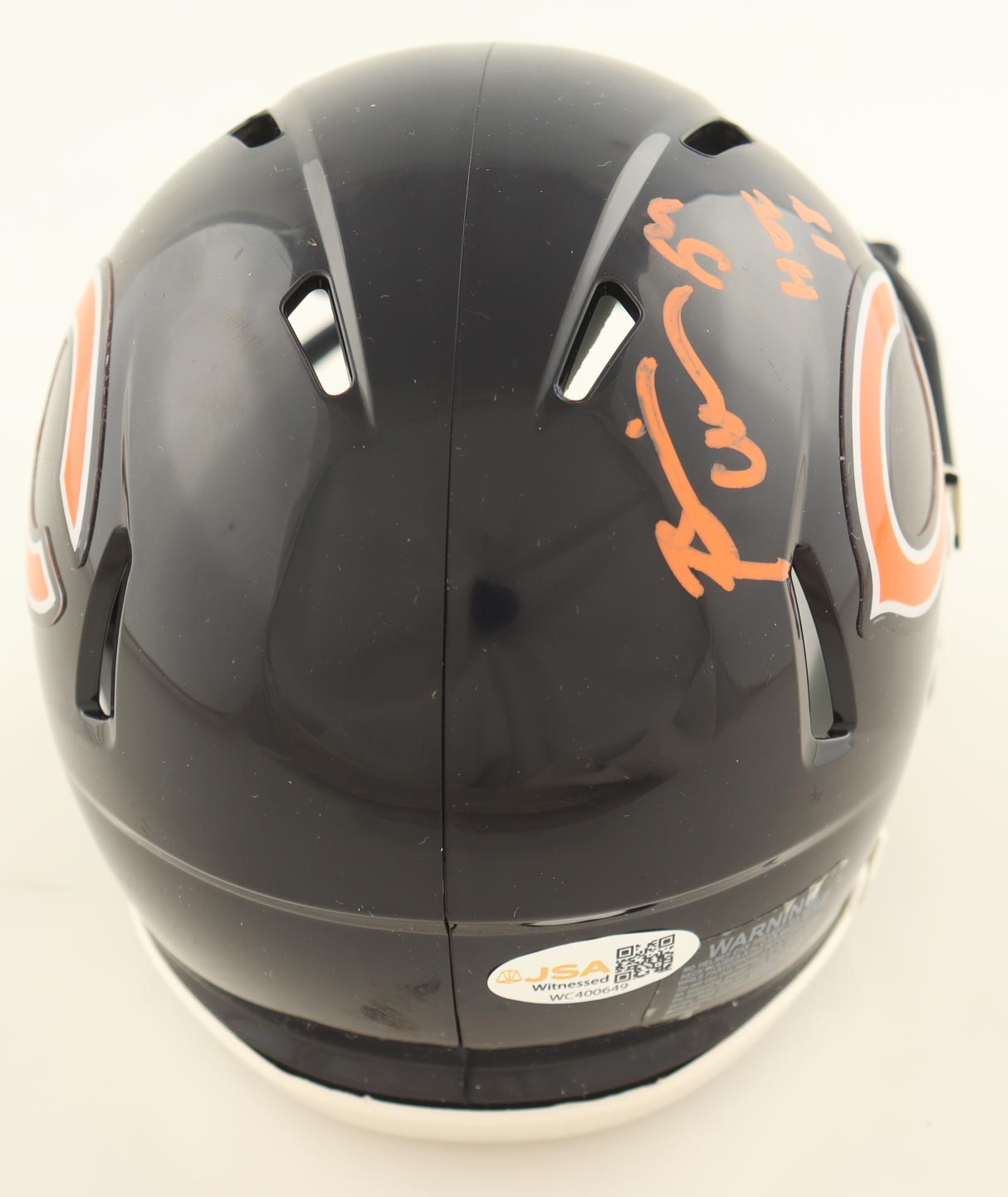 Riddell Chicago Bears Speed mini helmet. Hand-signed and inscribed by Brian Urlacher (HOF). See photos for more details.