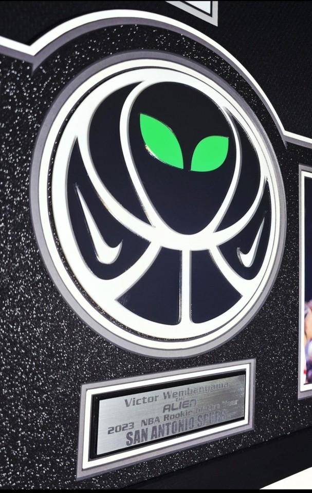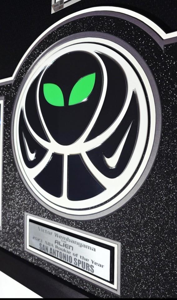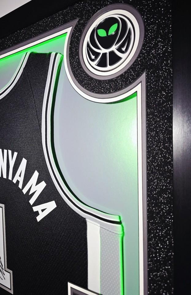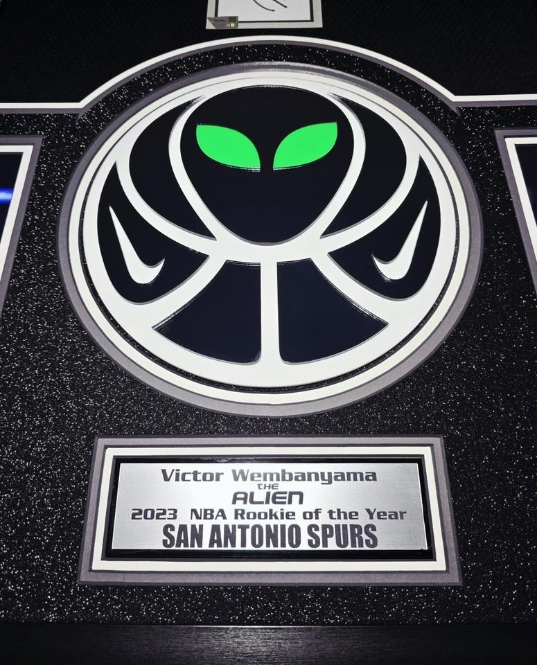 - The (2) Wembanyama signature logos (top left & right) are also 3D, laser cut, embedded into the matting and match the center logo.