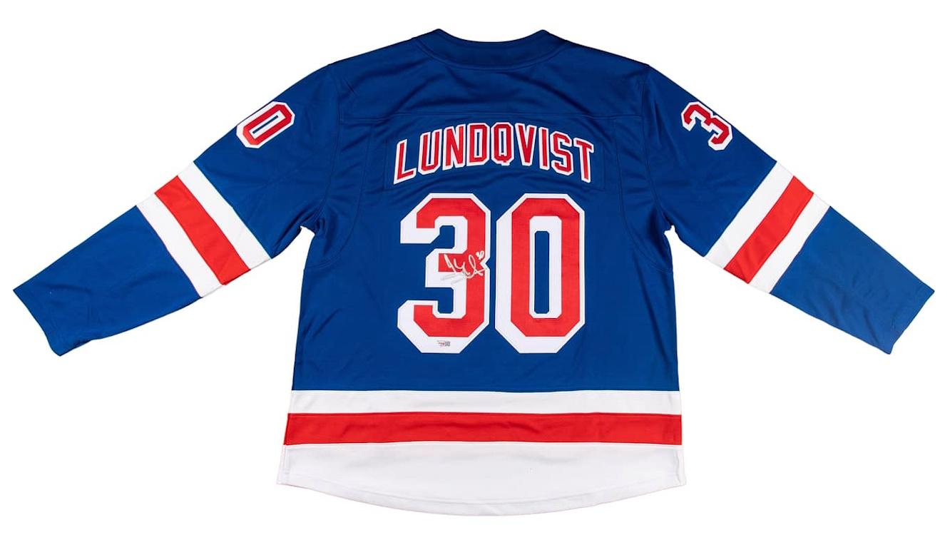 Fanatics jersey, size XL. Everything sewn on. Hand-signed by Henrik Lundqvist.